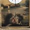 Piccolo dipinto ad olio entro cornice dorata, raffigurante un paessago fluviale, al centro del quale è collocato un orologio con quadrante in smalto bianco e numeri romani con un lungo pendolo sulla sommità e carica a chiave. Poggiante su basamento ligneo e collocato entro campana di vetro coeva.