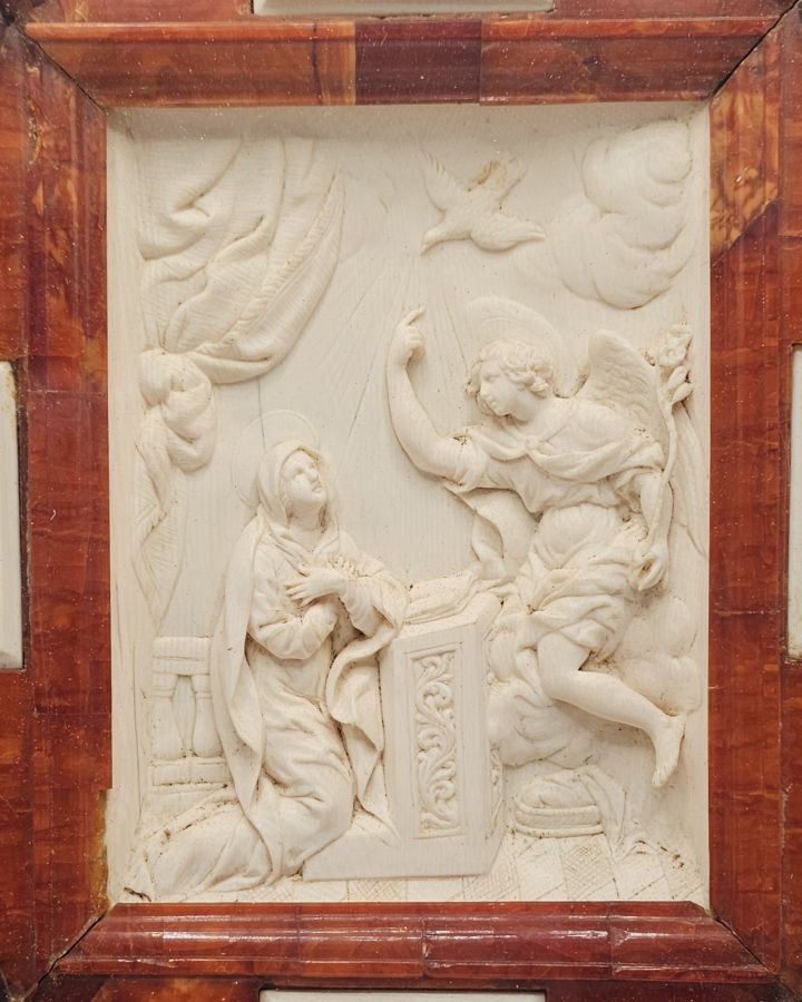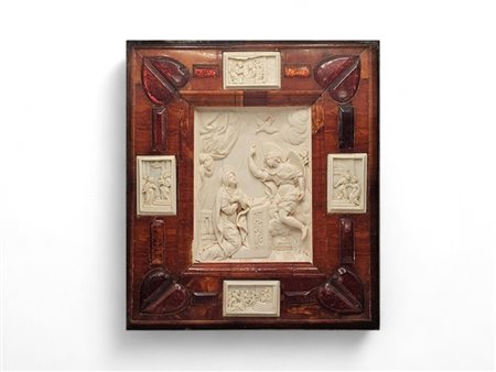 Rilevo in avorio con cornice in ambra baltica XVII e il XVIII secolo 25,5 x 22,5 cm.