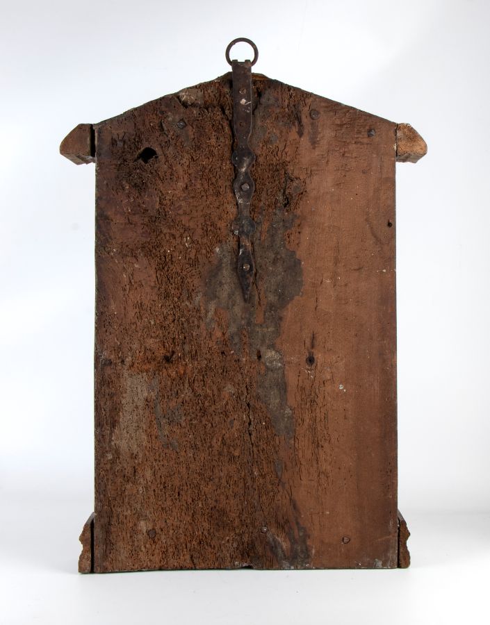 L’opera è inserita in un’edicola di legno, che funge da cornice sacra e protettiva.