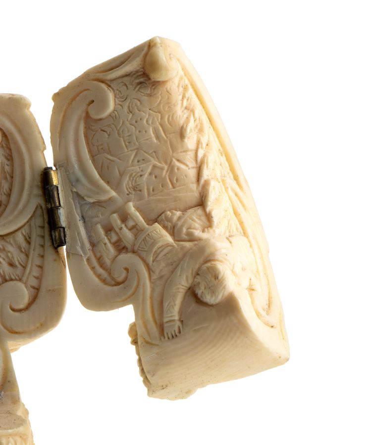 Scultura apribile in avorio raffigurante Napoleone Francia, Dieppe (?), XIX secolo Altezza x larghezza x profondità: 20 x 5 x 5,5 cm. Larghezza aperto: 11,7 cm. Peso 266 gr