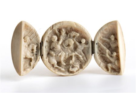 Trittico a sfera pieghevole in avorio Francia, Dieppe (?), XIX secolo