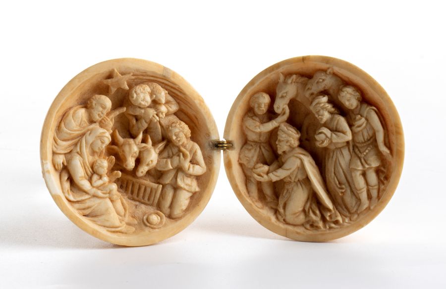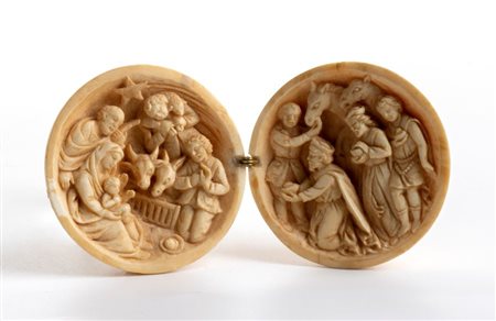 Dittico a sfera pieghevole in avorio Francia, Dieppe (?), XIX secolo