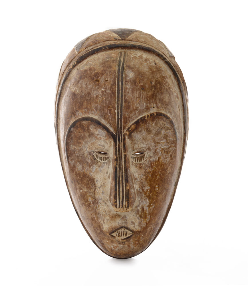 MASCHERA IN LEGNO SCOLPITO, AFRICA, INIZIO XX SECOLO, tracce di colorazione.