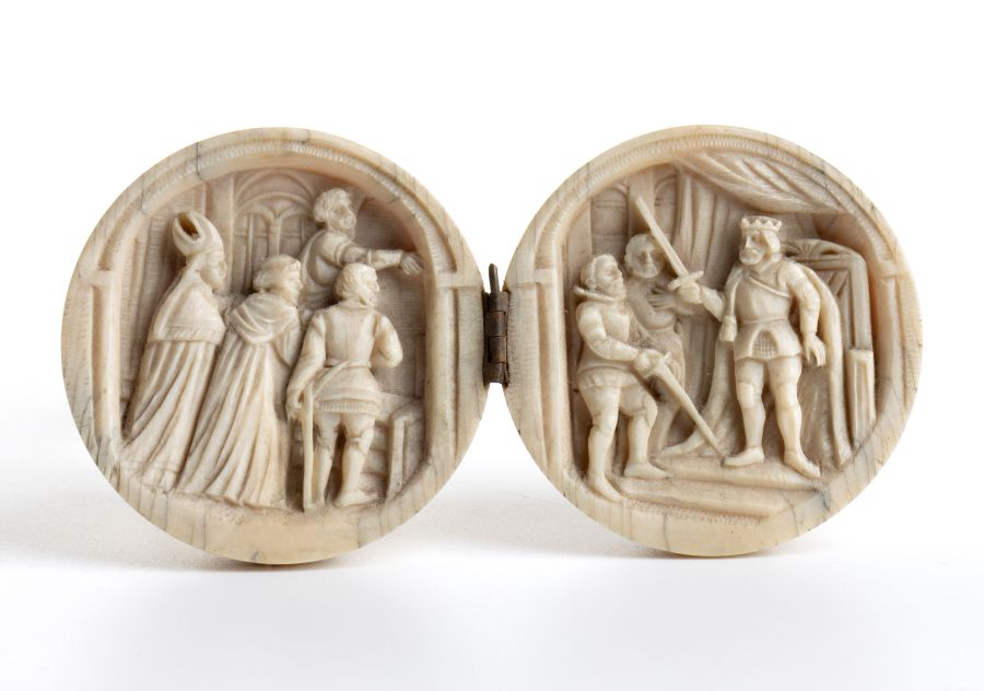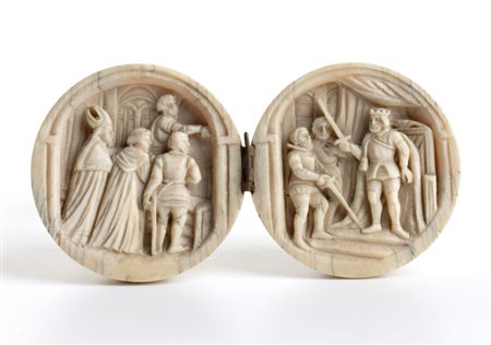 Dittico a sfera pieghevole in avorio Francia, Dieppe (?), XIX secolo