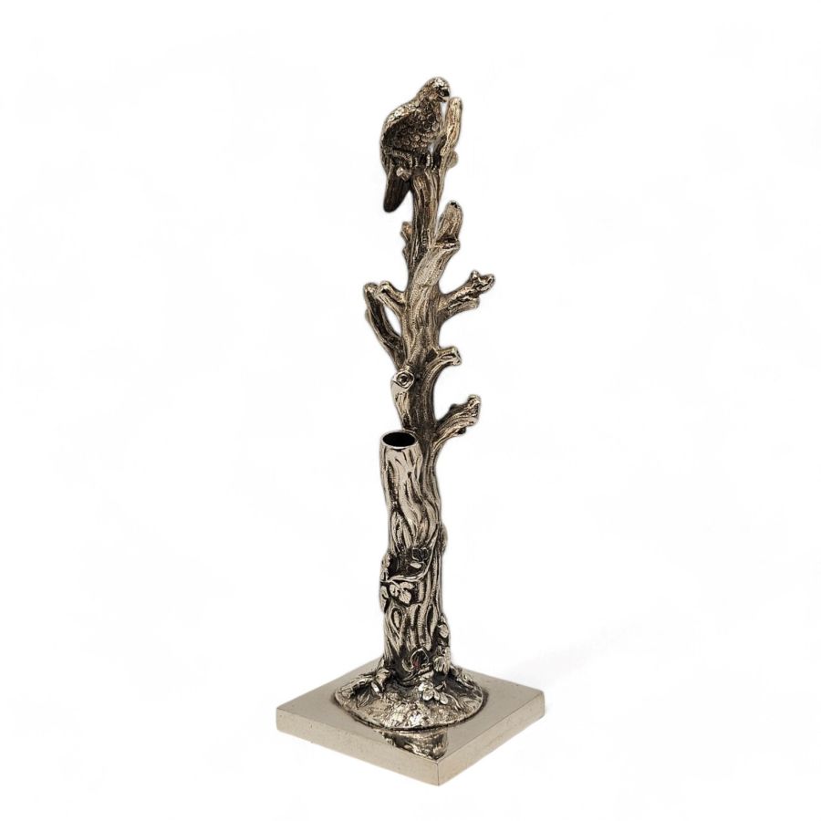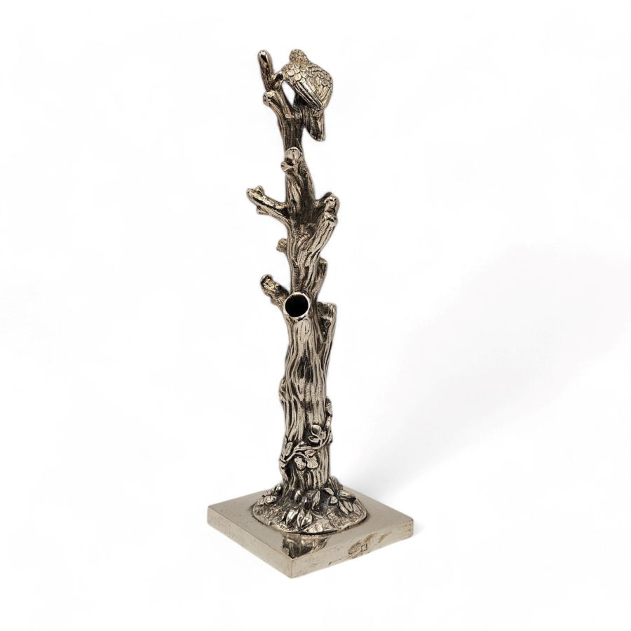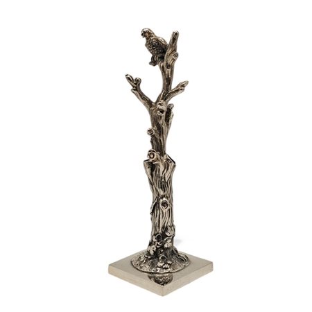 Altezza x larghezza x profondità: 17 x 5,5 x 5,5 cm. Peso: 192 gr. a forma di albero spoglio, poggiante su base quadrata liscia, con un piccolo falco posto sull'apice.