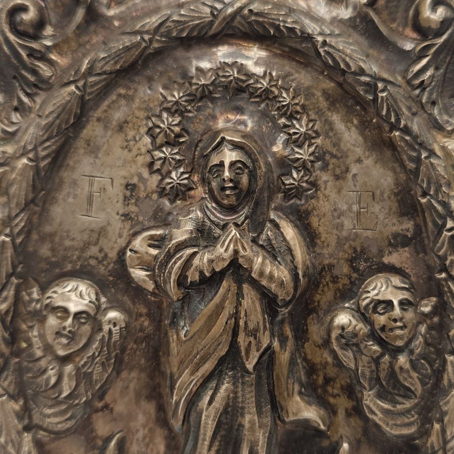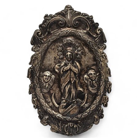 Ex-voto italiano in argento Napoli, 1832 - 1872 Altezza x larghezza 17 x 11 cm. Peso: 79 gr.