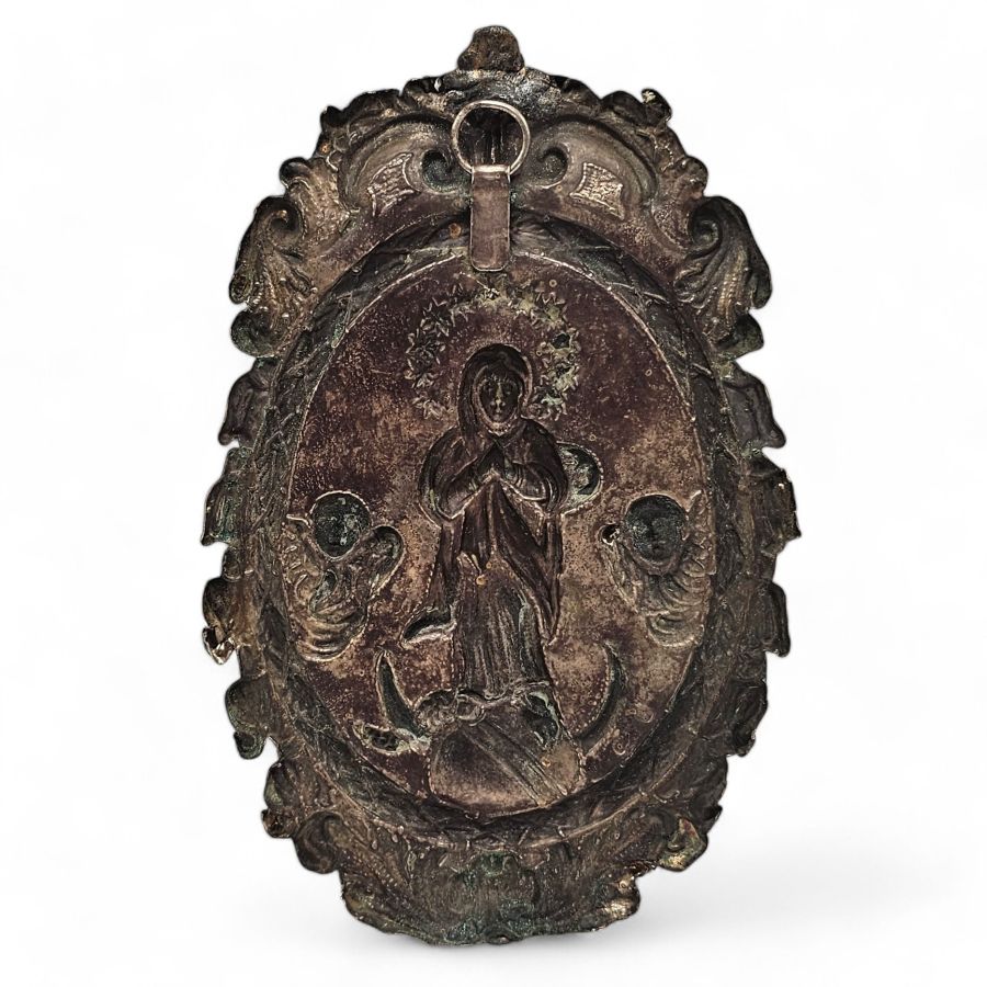 Altezza x larghezza 17 x 11 cm. Peso: 79 gr. forma di arte popolare, manufatti artigianali che rappresentano testimonianze di devozione e religiosità legati spesso a eventi miracolosi o richieste di miracolo, spesso collocabili tra storia e leggenda, come le reliquie. I temi rappresentati sono solitamente Madonne, Santi o categorie di voti come guarigioni, incidenti e calamità naturali e i loro committenti spaziano tra le classi sociali.