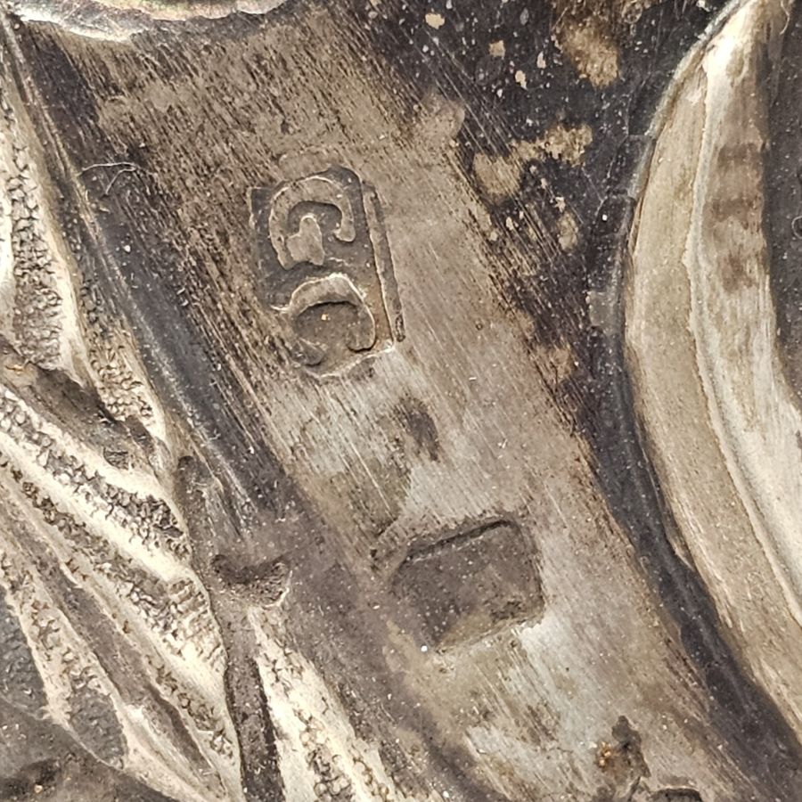 Argento 833/1000, punzonata con il marchio in uso alla corporazione degli orefici di Napoli per gli oggetti in argento al titolo di 833/1000 o 10 once, dal 1832 al 1872, argentiere non identificato.
