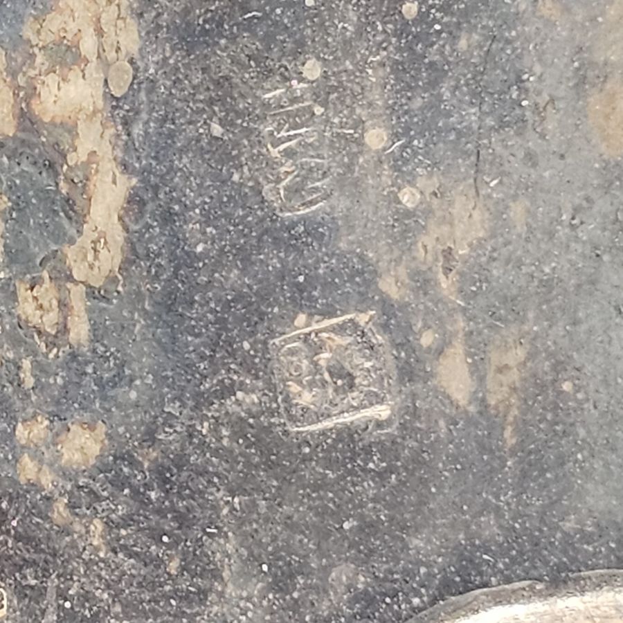 Argento 833/1000, punzonato con il marchio in uso alla corporazione degli orefici di Napoli per gli oggetti in argento al titolo di 833/1000 o 10 once, in uso dal 1832 al 1872, argentiere non identificato.