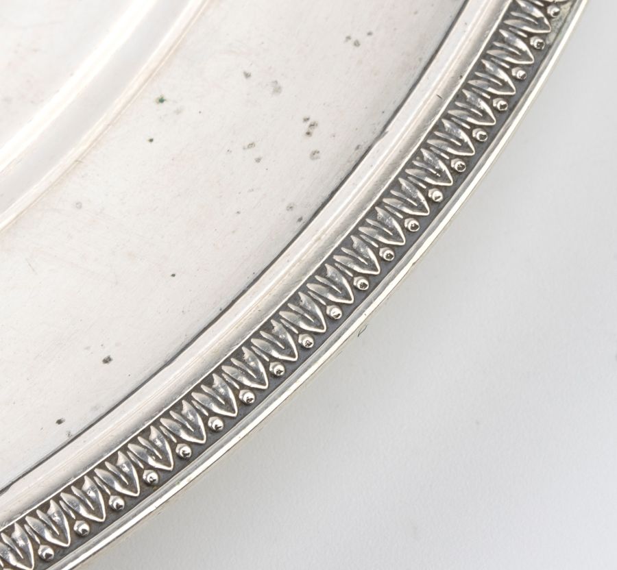 Diametro: 23 cm. Peso: 390 gr circa. di forma rotonda, con bordi in stile Impero.