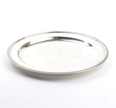 Piatto italiano in argento 1812-1872 Diametro: 23 cm. Peso: 390 gr circa.