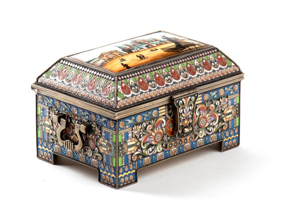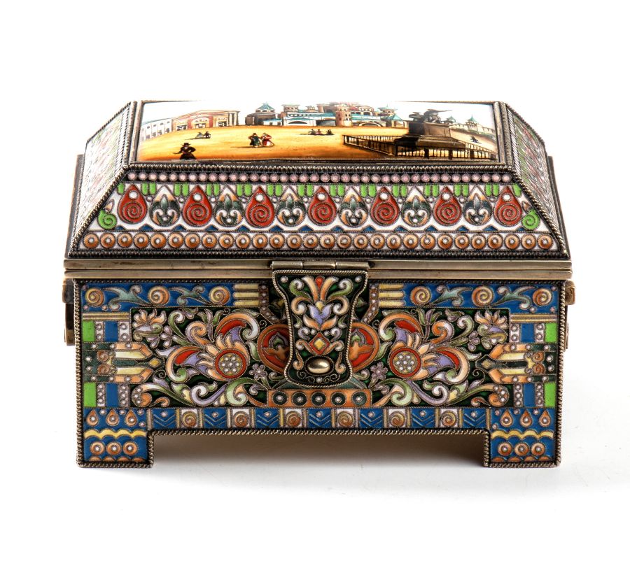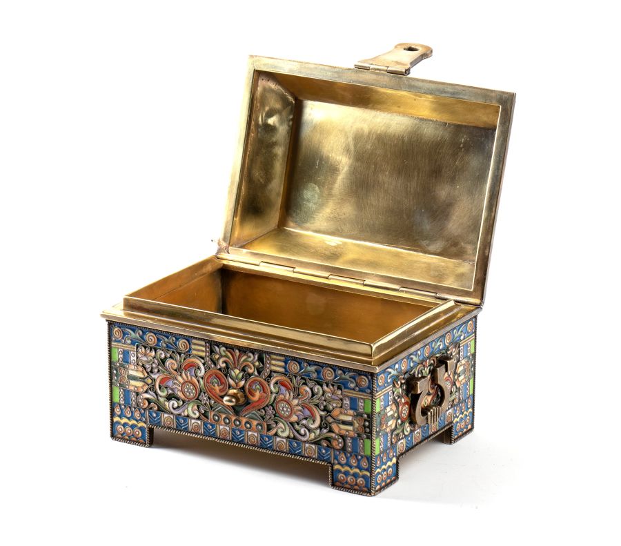 Cofanetto russo in argento dorato e smalti cloisonné San Pietroburgo, 1908-1917