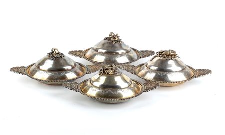 Gruppo di 4 legumiere Russe in argento Mosca 1796 (?) Altezza x larghezza x profondità: 10 x 28 x 16 cm. Peso totale: 2850 gr.