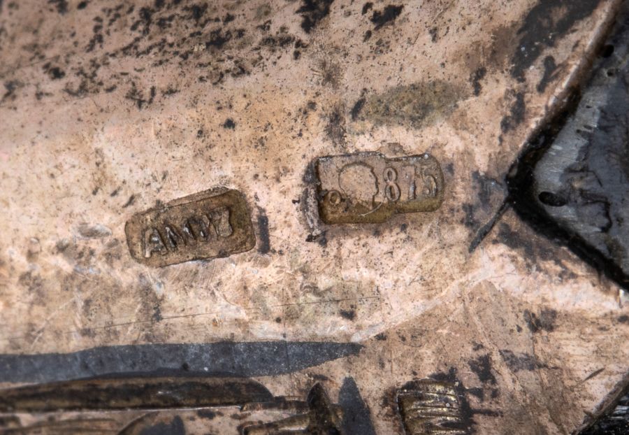 Punzonata con il marchio polifunzionale per l'argento al titolo di 84 zolotniks (875/1000) in uso in Russia dal 1954 al 1958, e con il marchio di un argentiere non identificato. Classificazione dello stato di conservazione: **** buono.