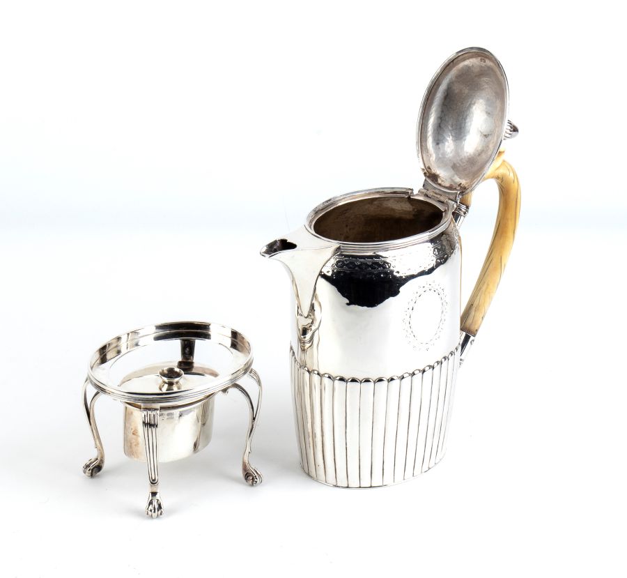 Caffettiera georgiana inglese con stand in argento e avorio Londra 1802