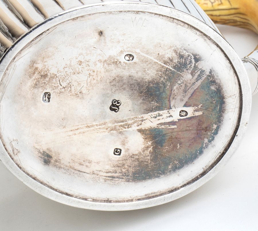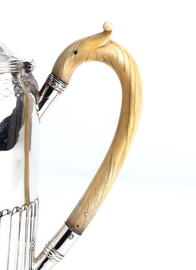 John Edington - John Emes , Caffettiera georgiana inglese con stand in argento e avorio Londra 1802