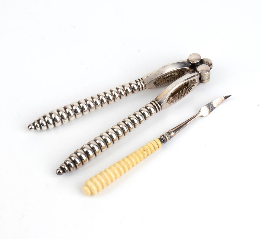 Set per noci vittoriano inglese in metallo e avorio Sheffield fine XIX secolo