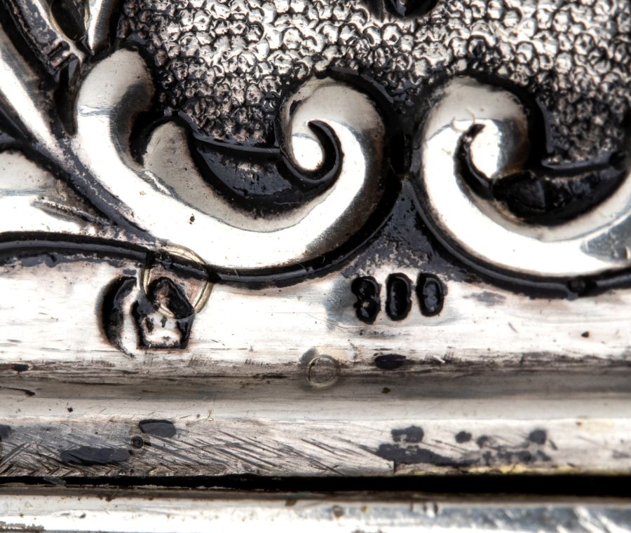 Argento 800/1000, punzonata con i marchi tedeschi per l'argento in uso in Germania, ad Hanau, dal 1817; argentiere J.D. SCHLEISSNER AND SOHNE.