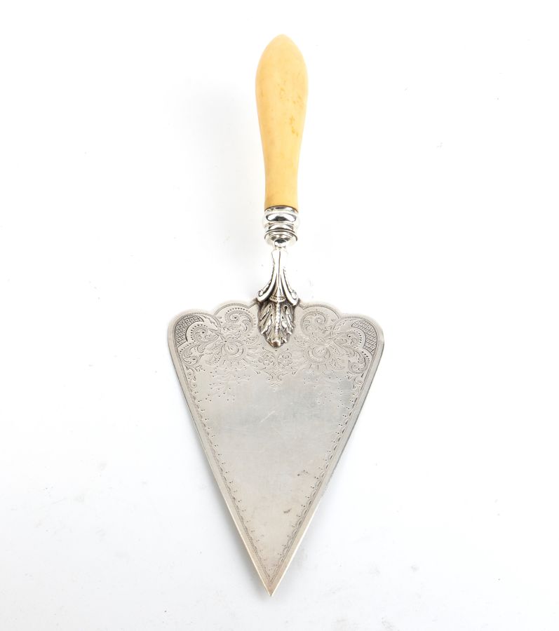 Cazzuola cerimoniale vittoriana inglese in argento e avorio Sheffield 1896