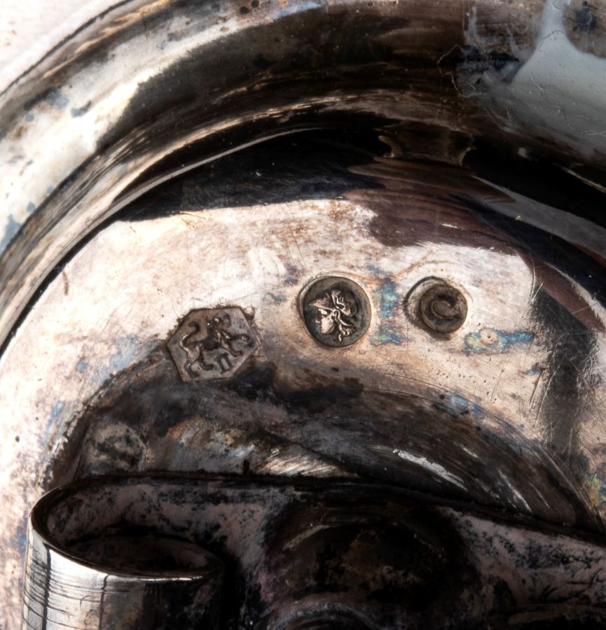 Argento 833/1000, punzonato con i marchi della corporazione dell'argento utilizzati nei Paesi Bassi dal 1814 al 1953; marchio del Leone passante per la seconda purezza standard (minimo 833/1000), marchio della testa di Minerva e marchio della data “C” per il 1837. Classificazione dello stato di conservazione: **** buono.