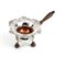 Altezza x larghezza x profondità: 27 x 17 x 5 cm. Peso complessivo lordo: 405 gr. di forma circolare traforato e inciso a motivi floreali e vegetali; poggiante su tre piedini ad artiglio su piedini posti su supporti in legno tornito di forma rotonda, fondo in rame. Presa laterale in legno tornito