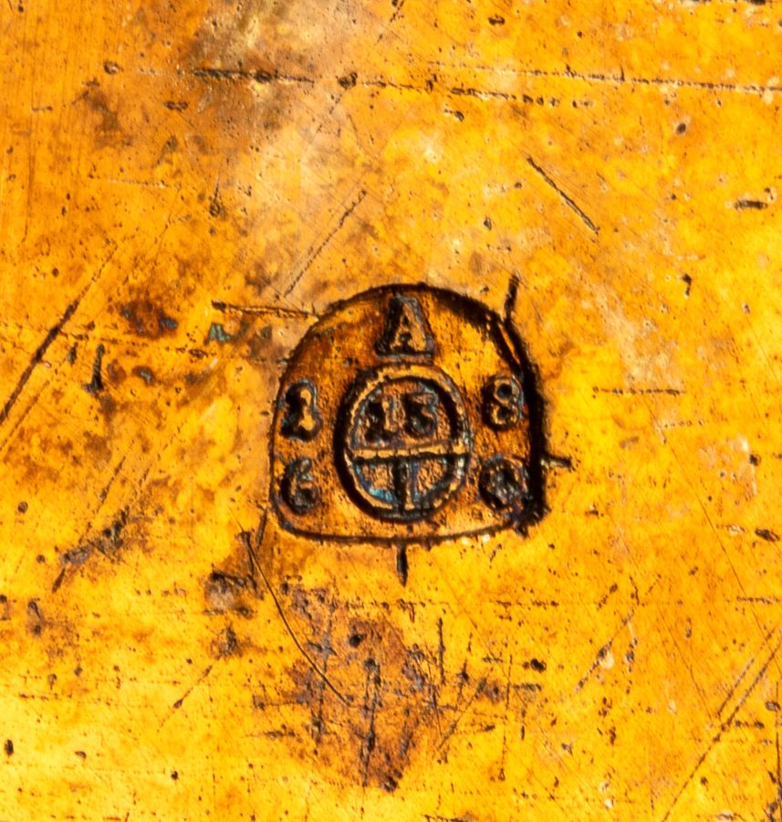 Punzonata con il marchio polifunzionale per l'argento al titolo di 13 löth (812,50/1000) in uso a Vienna nel 1860, e con il marchio dell'argentiere Theodor Bittner (?).