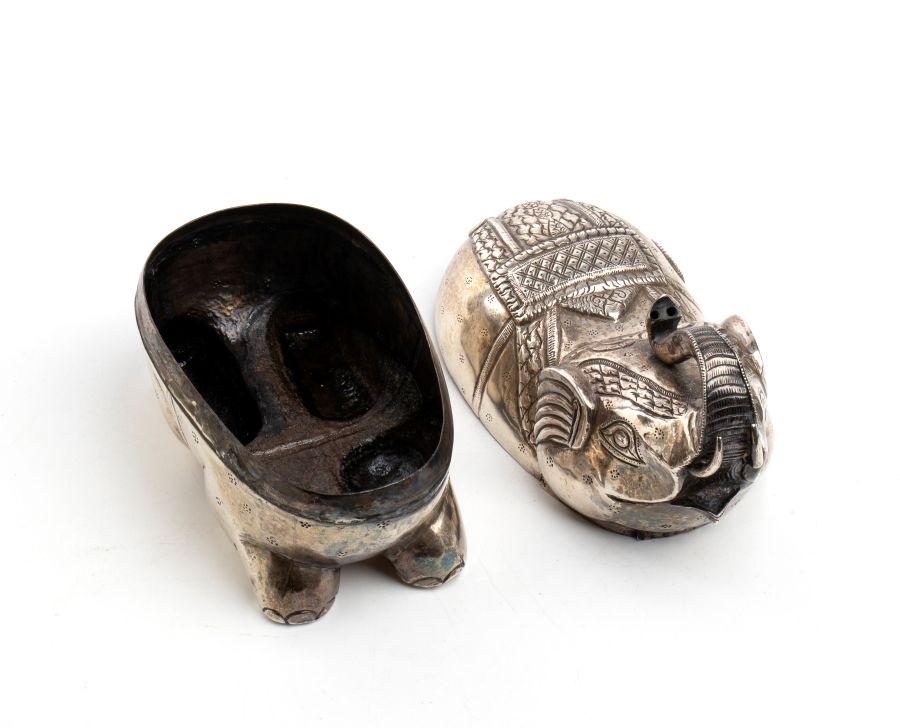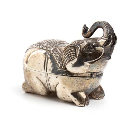 Scatola di Betel cambogiana n argento Inizio XX secolo Altezza x larghezza x profonfità: 12,4 x 15 x 7,8 cm. Peso: 195 gr.