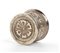 Altezza x diametro: 6,8 x 7,4. Peso: 148 gr. di forma circolare, con coperchio ad innesto. Il corpo riccamente sbalzato e cesellato.