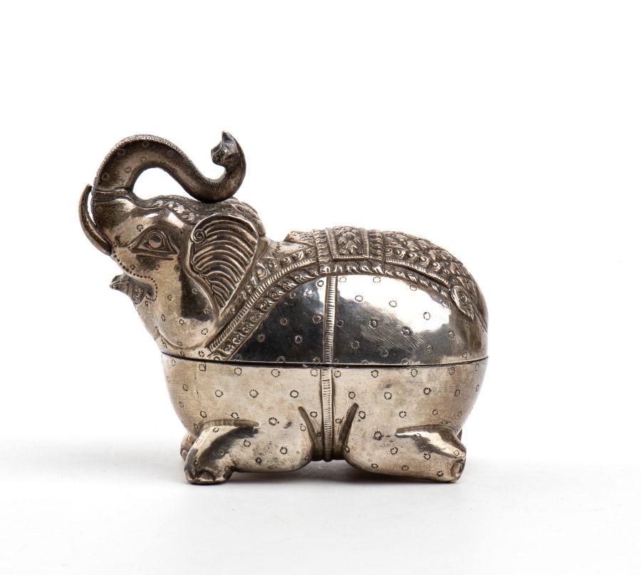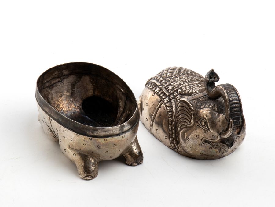 Altezza x larghezza x profondità: 10,2 x 11,2 x 6,1 cm; Peso: 113 gr. a forma di elefante khmer finemente decorata. Classificazione dello stato di conservazione: **** buono.