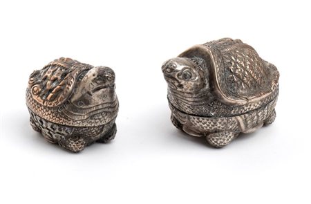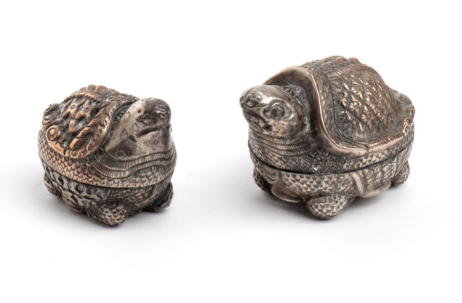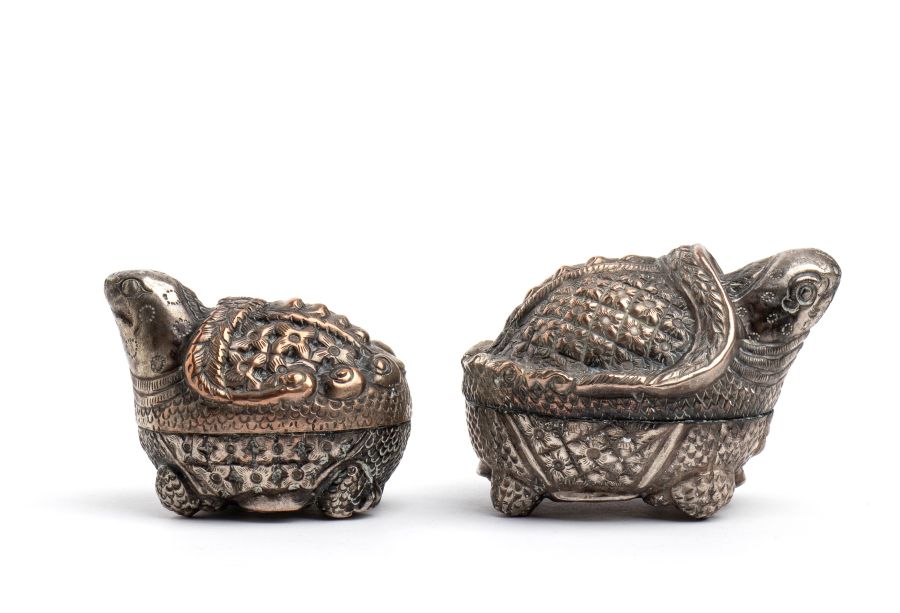 Due scatole di Betel cambogiane Inizio XX secolo Peso totale: 84 gr