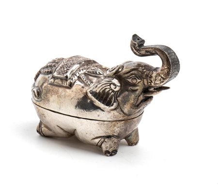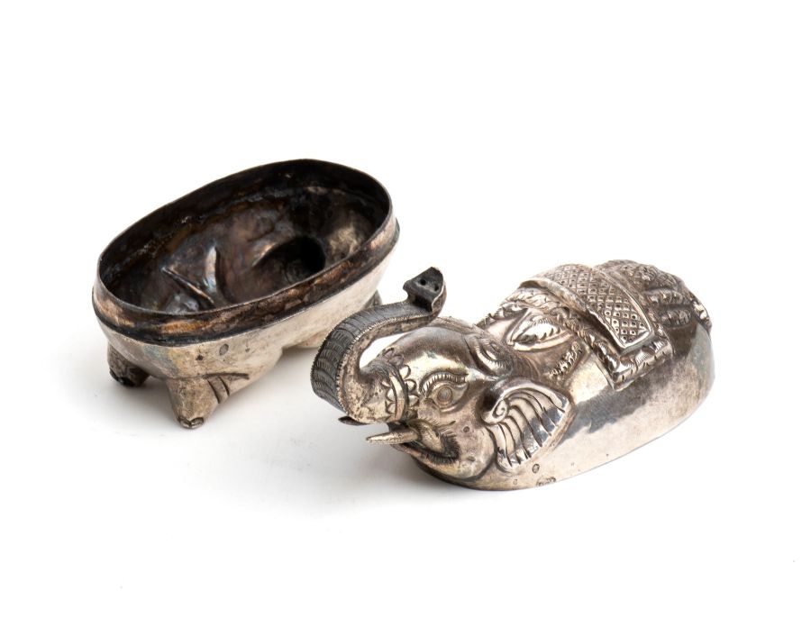 Scatola di Betel cambogiana in argento Inizio XX secolo Altezza x larghezza x profondità: 6,3 x 9,2 x 3,9 cm; Peso: 63 gr.