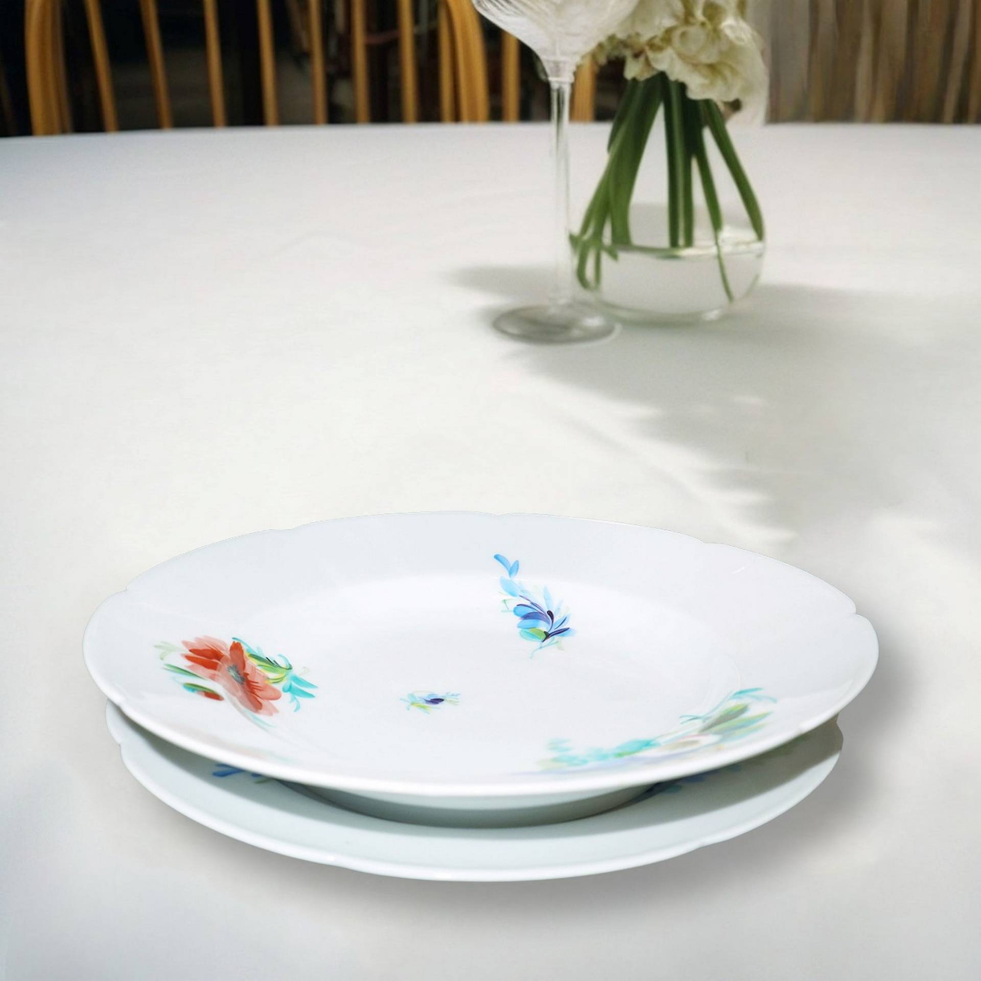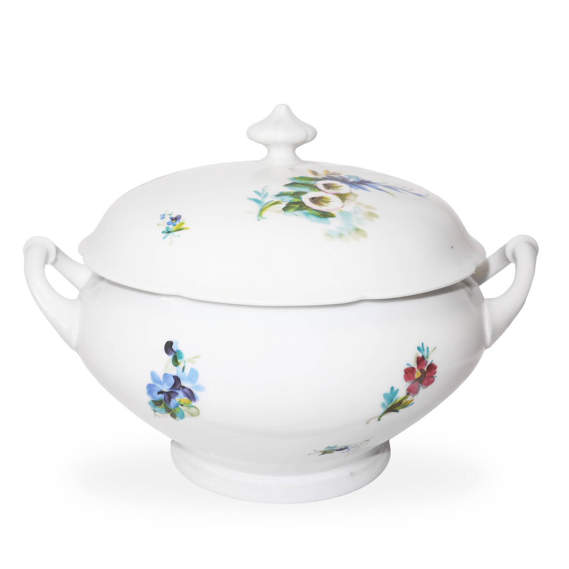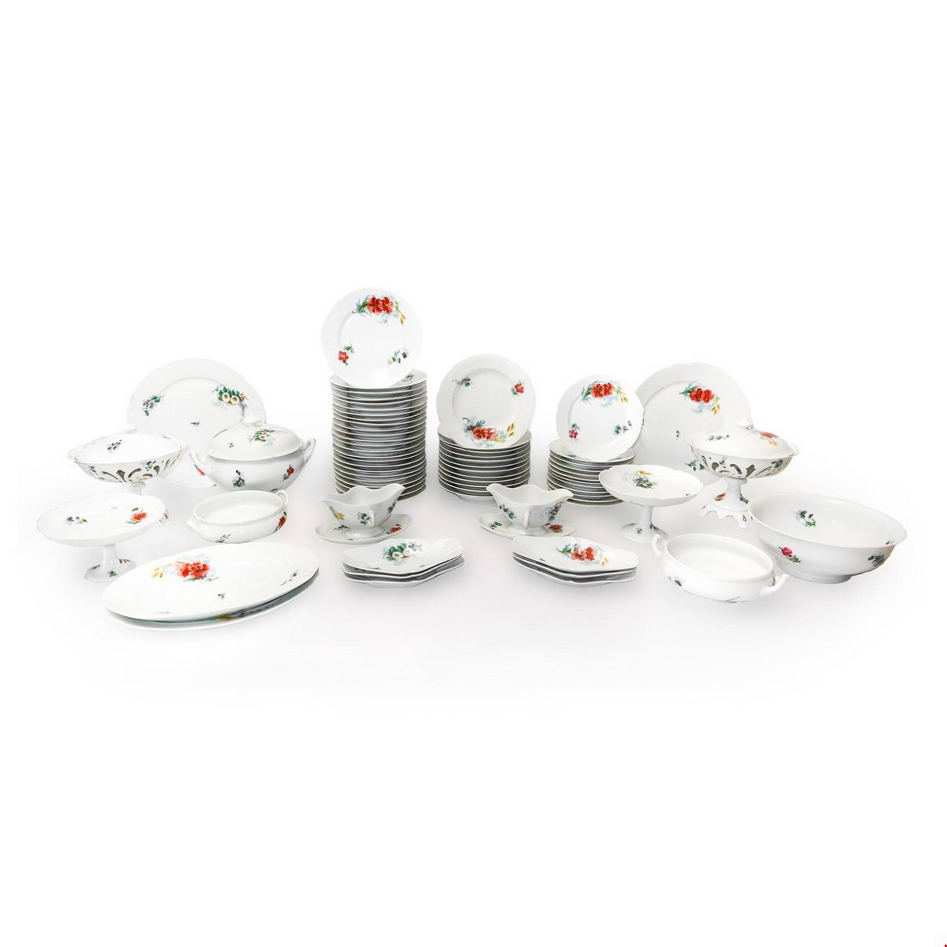 Ginori di Doccia (Sesto Fiorentino 1735) - Bel servizio di piatti in porcellana per 12 con piatti da portata con decori floreali, Florence, mid-19th secolo Marchio alla base. Composto da 24 piatti piani (3 con sbeccature); 12 piatti fondi (uno con sbeccature); 12 piatti da frutta (7 con sbeccature); 2 piatti grandi ovali; 2 piatti grandi rotondi (uno filato); 2 salsiere; 6 piattini ovali; 2 alzate con coperchio; 2 alzate senza copechio; 1 insalatiera filata, 1 zuppiera.Marchio alla base. Composto da 24 piatti piani (3 con sbeccature); 12 piatti fondi (uno con sbeccature); 12 piatti da frutta (7 con sbeccature); 2 piatti grandi ovali; 2 piatti grandi rotondi (uno filato); 2 salsiere; 6 piattini ovali; 2 alzate con coperchio; 2 alzate senza copechio; 1 insalatiera filata, 1 zuppiera. Questo lotto è soggetto a diritto di seguito