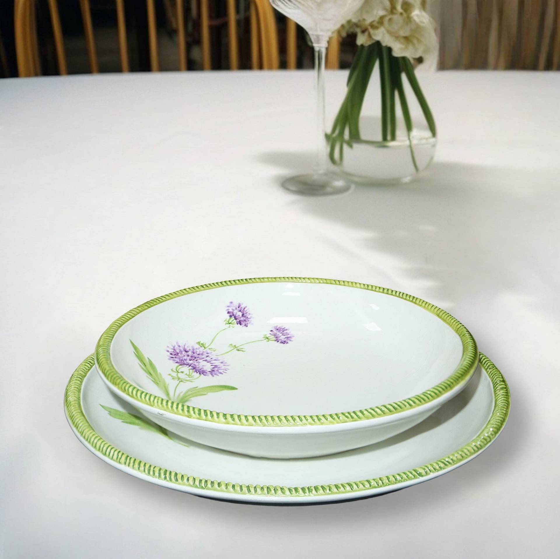 Servizio ''Valle'' da 12 con bordo a treccia verde e fiori di lavanda