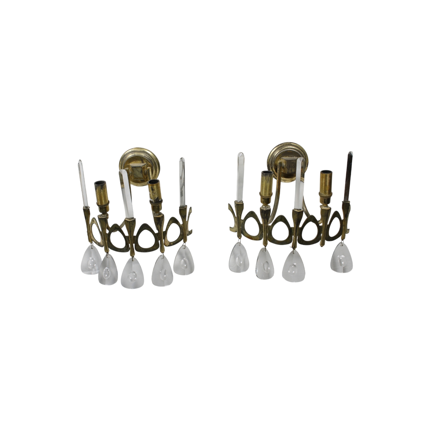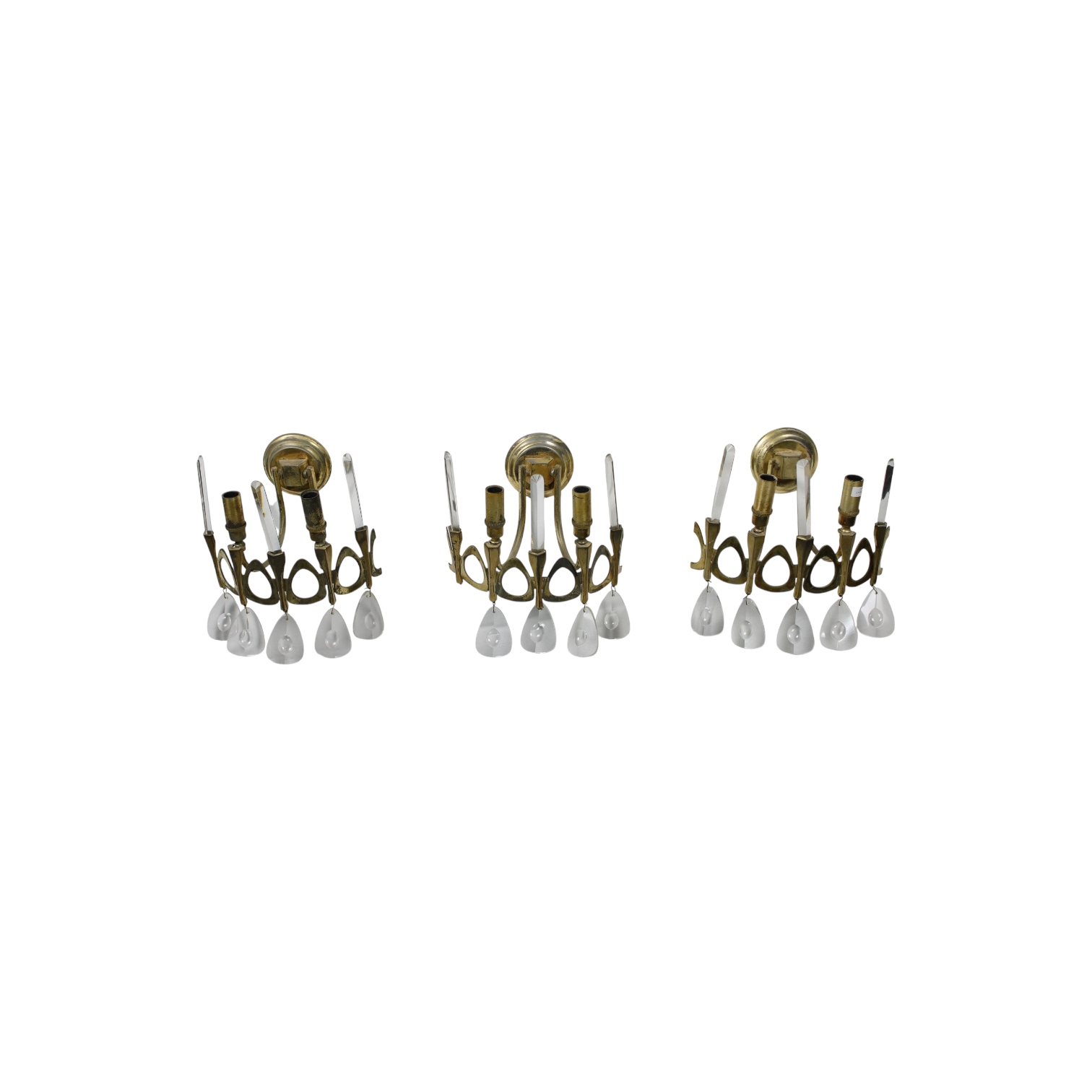 SET COMPOSTO DA 5 appliques produzione italiana anni 60 in ottone e vetro design Gaetano Sciolari h cm 29 x 26