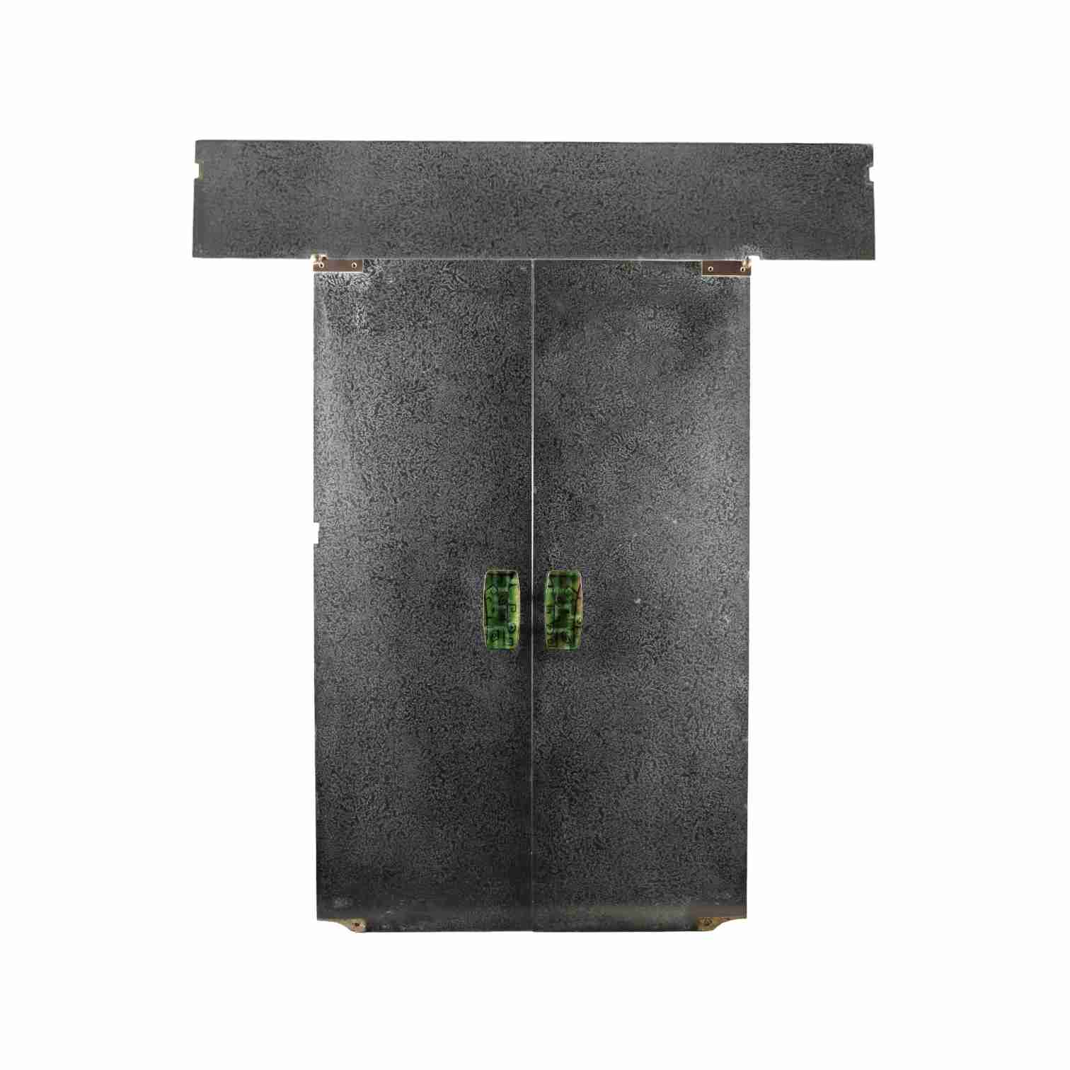PORTA D'ENTRATA in vetro satinato decorato con inserti in ottone e coppia di maniglie design De Poli Paolo anni 60 produzione italiana h cm 256 x 218