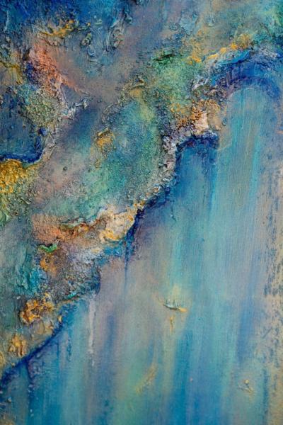 Acrilico, pietre piccole cemento e colate di vernice trasparente