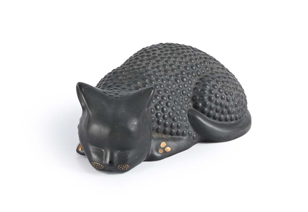 Piero Fornasetti - gatto nero accovacciato in ceramica, Milano, Anni...