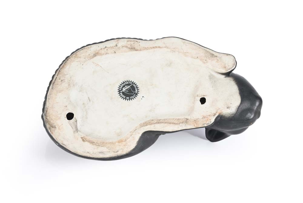 Piero Fornasetti - gatto nero accovacciato in ceramica, Milano, Anni Cinquanta cm 13x30x19