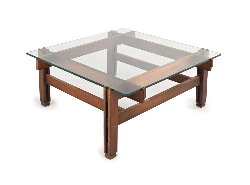 Ico e Luisa Parisi Coppia di tavolini produzione Cassina Anni '60 Struttura in legno e piano in cristallo molato ognuno misura cm h 35x80x80