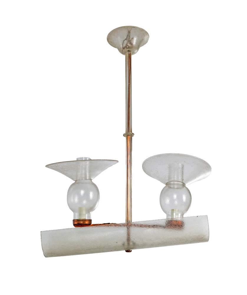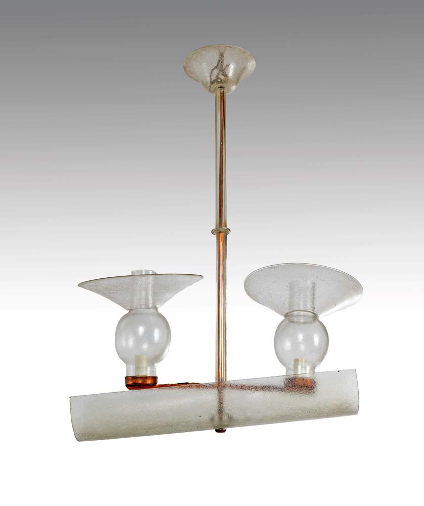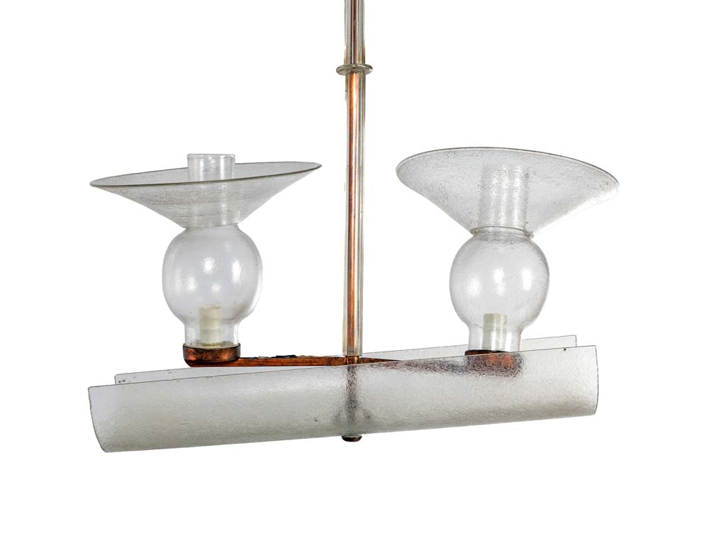 Lot 74 | Lampadario da soffitto in vetro e rame cm h 82x56x14