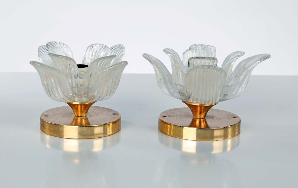 Gaetano Sciolari Coppia di applique in ottone e vetro cm 10x17x17 l'una Entrambe recano etichetta Sciolari Roma