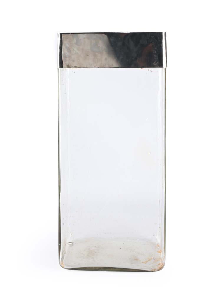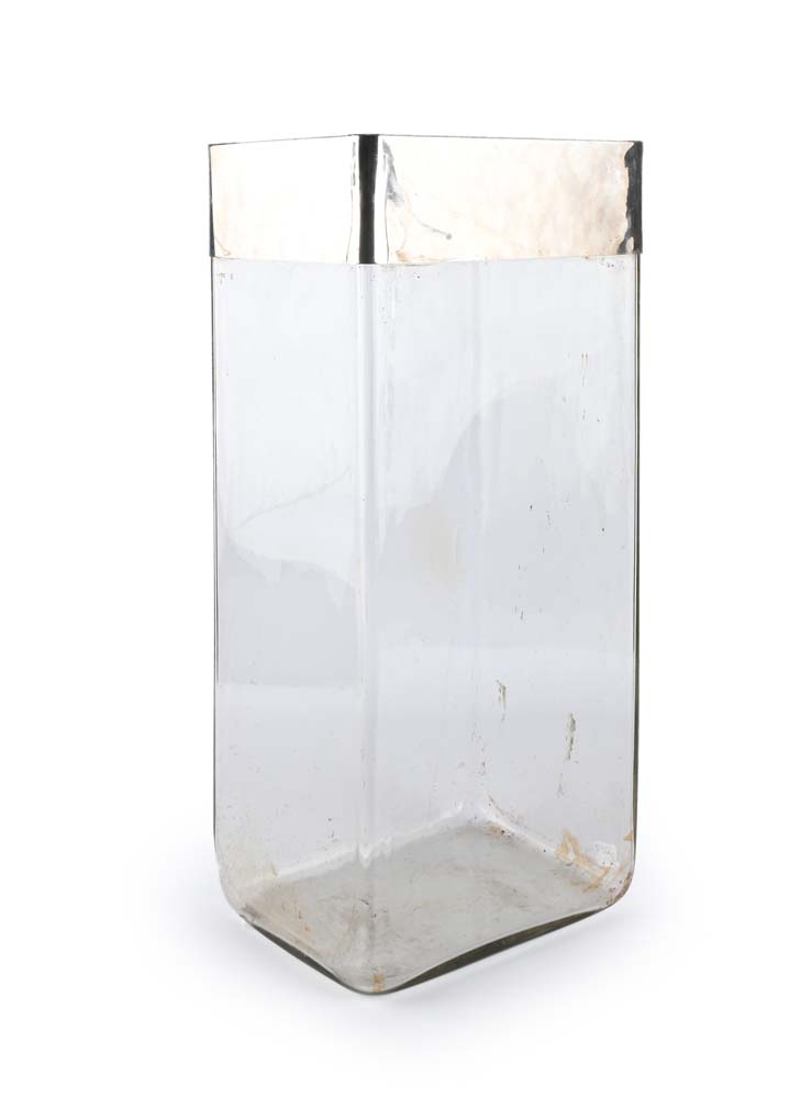 Portaombrelli in vetro con fascia in metallo argentato cm 62x28x22 pianta rettangolare con spigoli arrotondati Collezione Enrico e Antonello Falqui, Roma