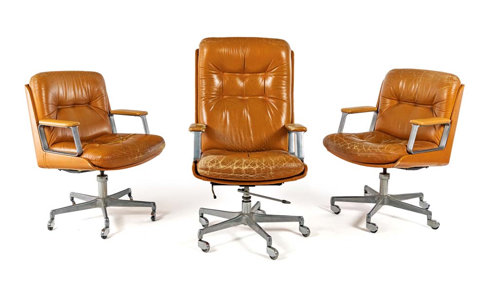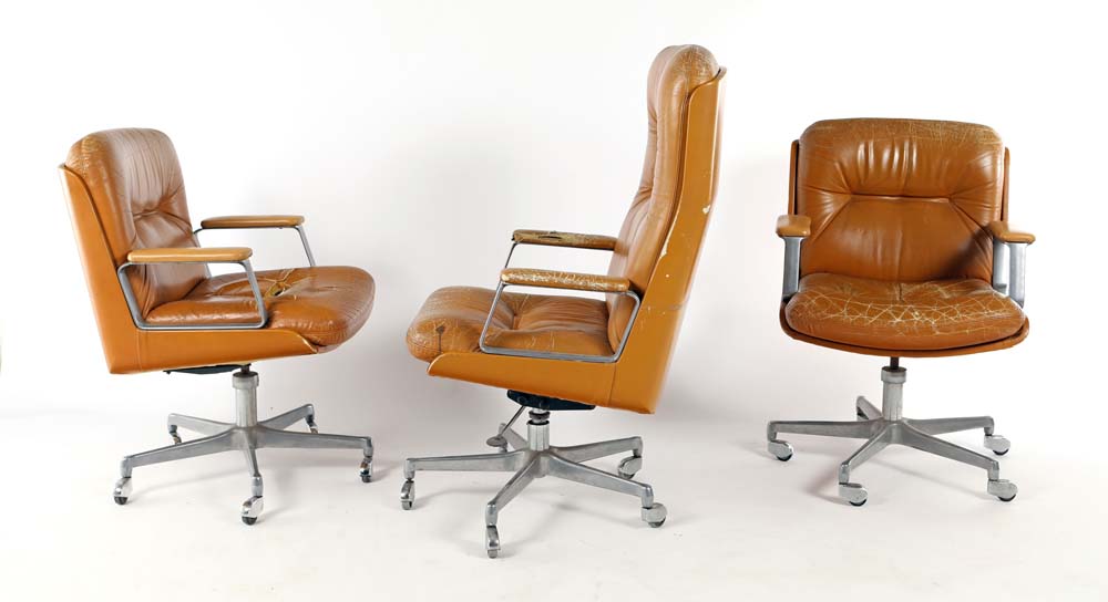 Tre poltrone da ufficio girevoli con ruote prod. Vaghi anni '60 Struttura in...