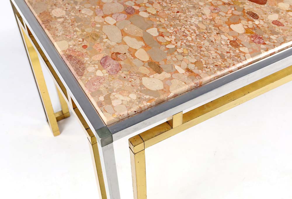 Tavolo rettangolare in ottone dorato e nichelato, Anni Settanta cm 74x160x80 cristallo originale mancante, sostituito da piano in marmo