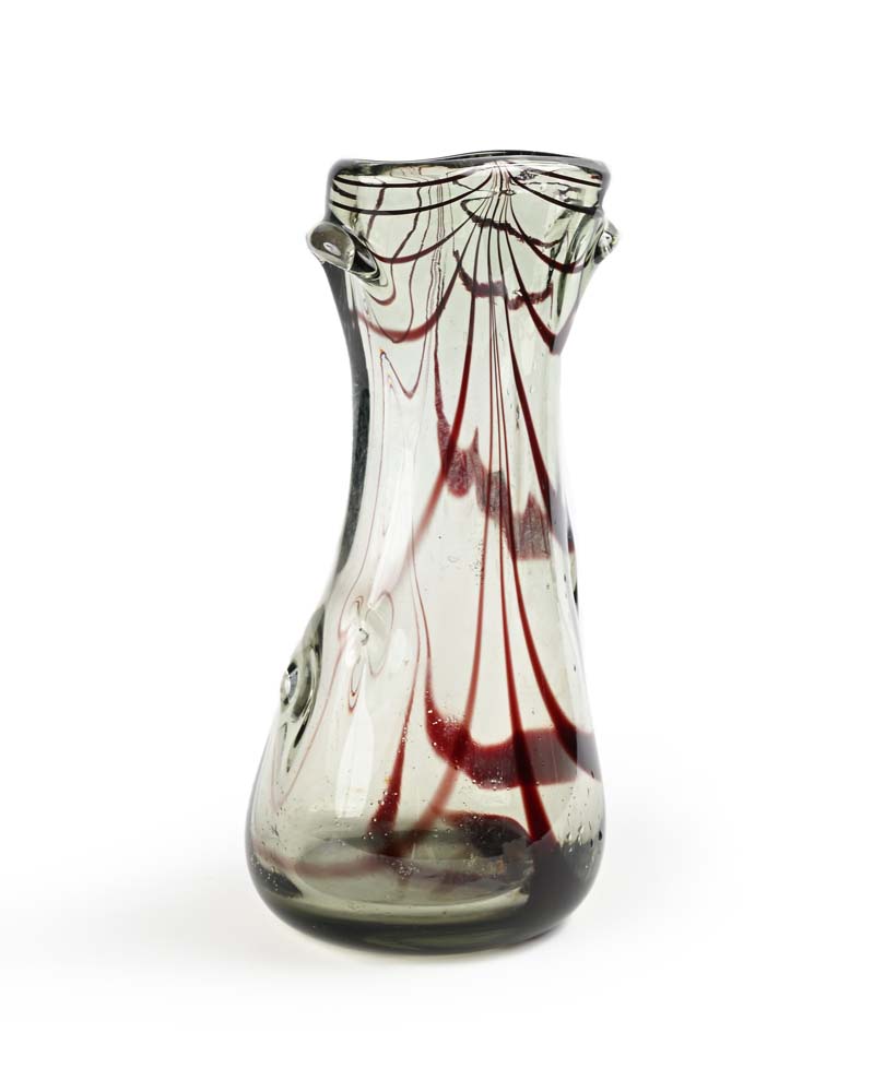 Vaso in vetro pesante incolore con striature viola altezza cm 27
