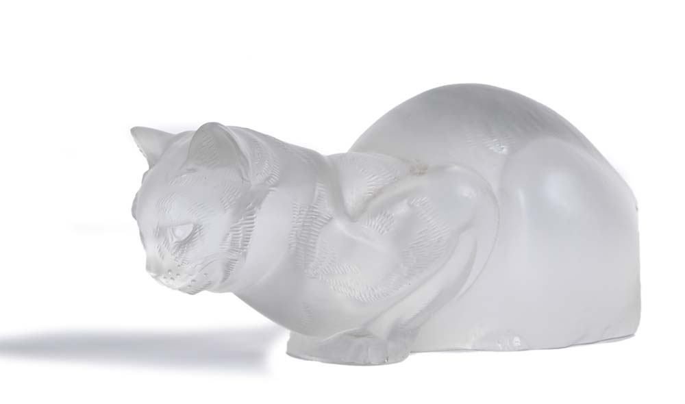 Gatto accovacciato in cristallo, Maison Lalique, Francia cm 11x24x10 Firmato...