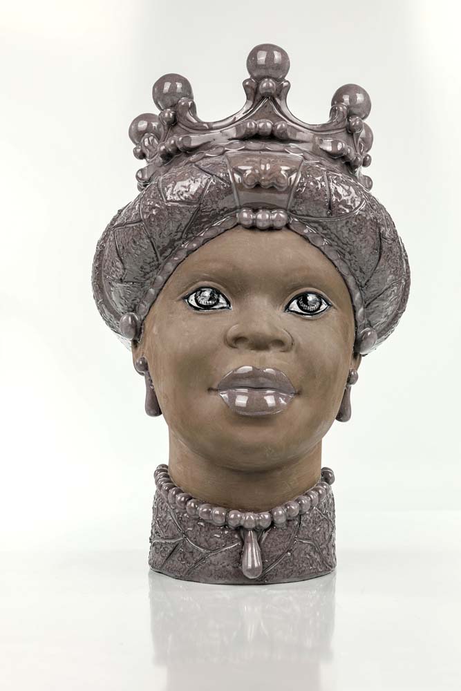 Lot 147 | testa di moro in ceramica artigianale di Caltagirone nei toni del grigio cm h...