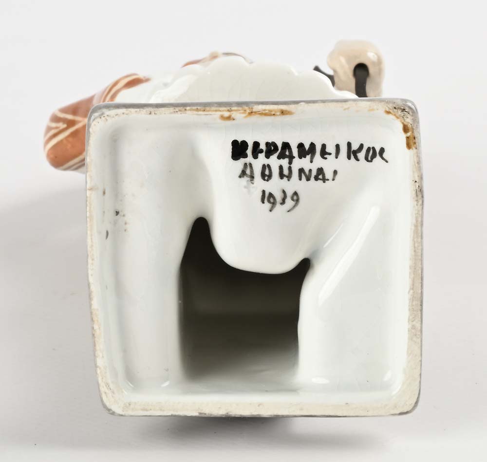 Scultura in ceramica dipinta 1939 h 23 cm Firma, titolo e data sotto la base Kerameikos Athnai