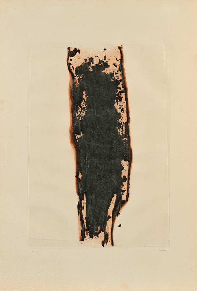 Alberto Burri Città Di Castello 1915-Nizza 1995 Combustione Acquaforte/acquatinta cm 67x45 - in cornice cm 81x60 Firma e numerazione "Burri, 55/60". Timbro in basso a sinistra dello stampatore 2RC