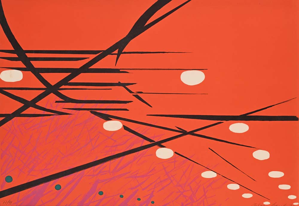 Titina Maselli Roma 1924-Roma 2005 Senza titolo 1975 Litografia cm 48x70 Firma, data e numerazione "Titina Maselli '75, 77/99". Timbro a secco Alberto Caprini Stampatore in Roma
